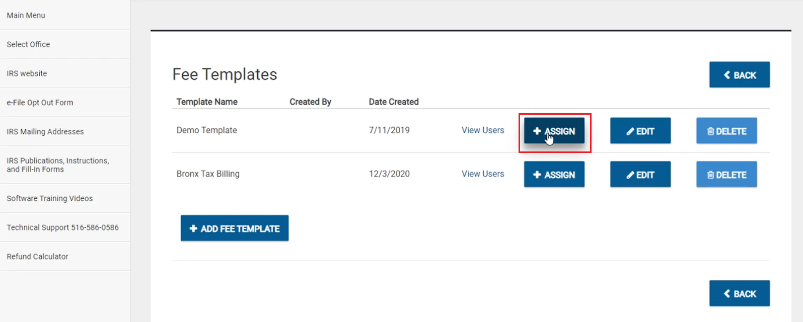 👉 Click on the Assign button next to the office you want to assign the template to.
