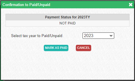Marking a location as PAID will allow that location to transmit returns in whichever tax year is selected in the dropdown box.