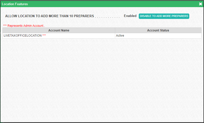 This will prevent the admin user and any preparers from being able to sign into this location.