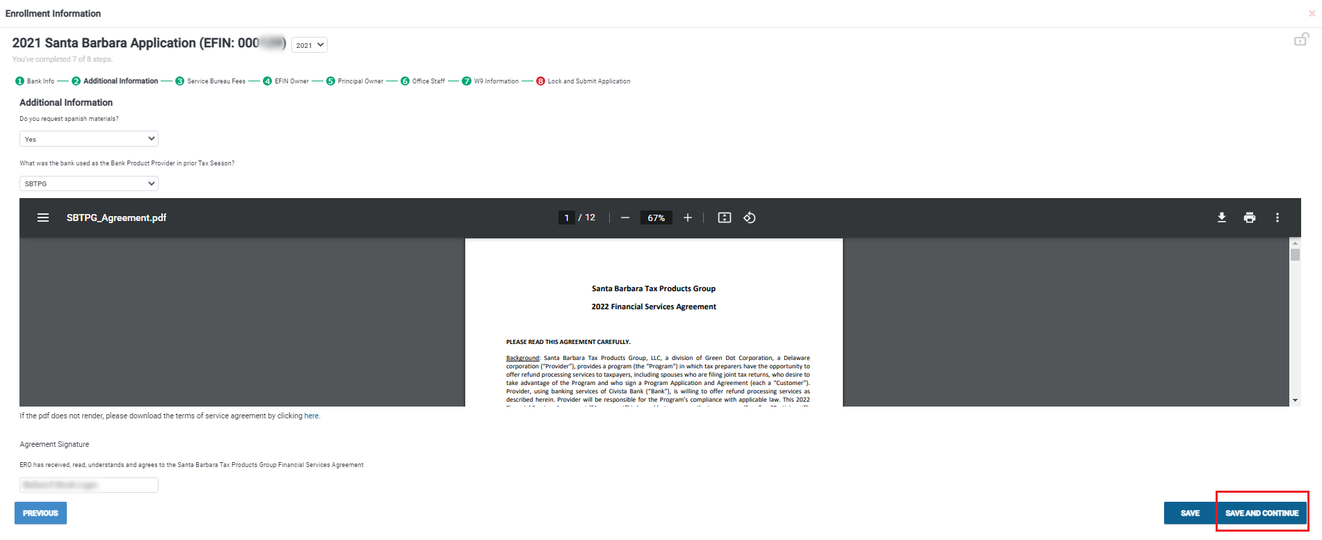 For the service bureau fees, you can leave it as default. This is not for filing returns, this is just a reporting ID for the bank