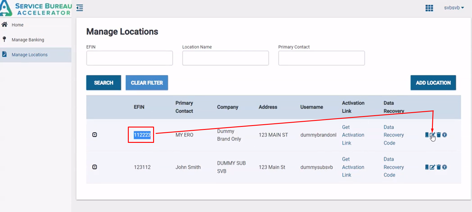 Locate the EFIN you are having issues with > Click Edit