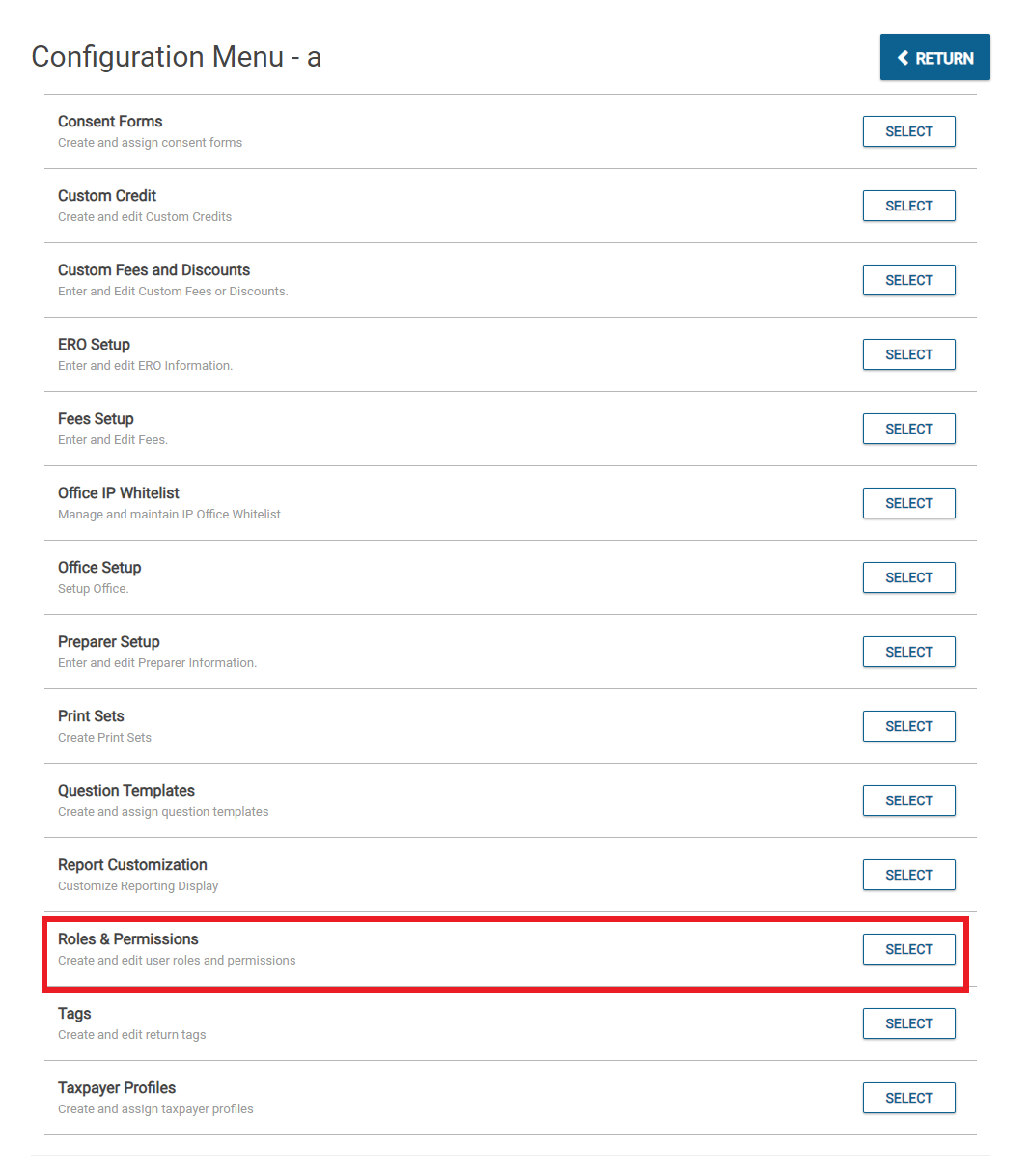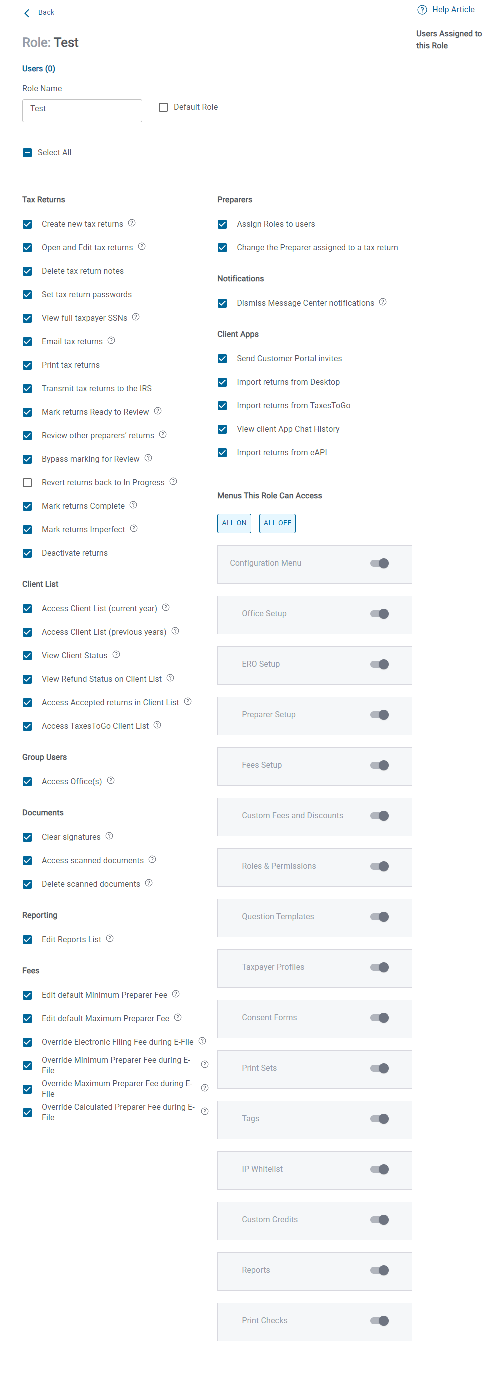Security Templates/Roles & Permissions allow the ERO/Office Administrator to control what each preparer has access to do within the program.